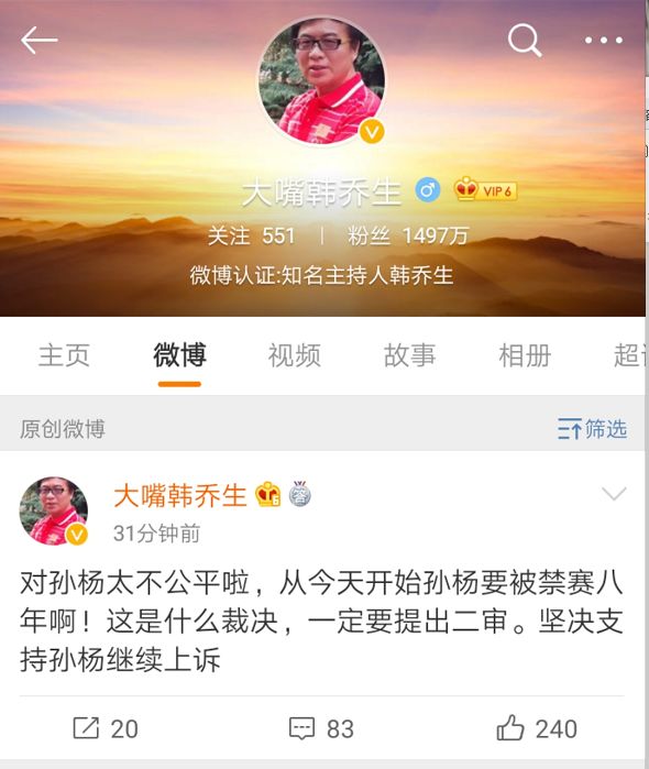 孫楊 微博 - ç¦èµ8å¹´ 忍å åç"涯æåç»ç»" è¿äºå"çæç¹æ