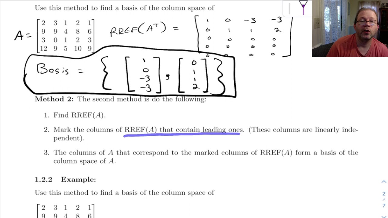 The columns from the original matrix which have leading ones when reduced form a basis for the column space of a.in the above example, columns 1, 2, and 4 have leading ones.